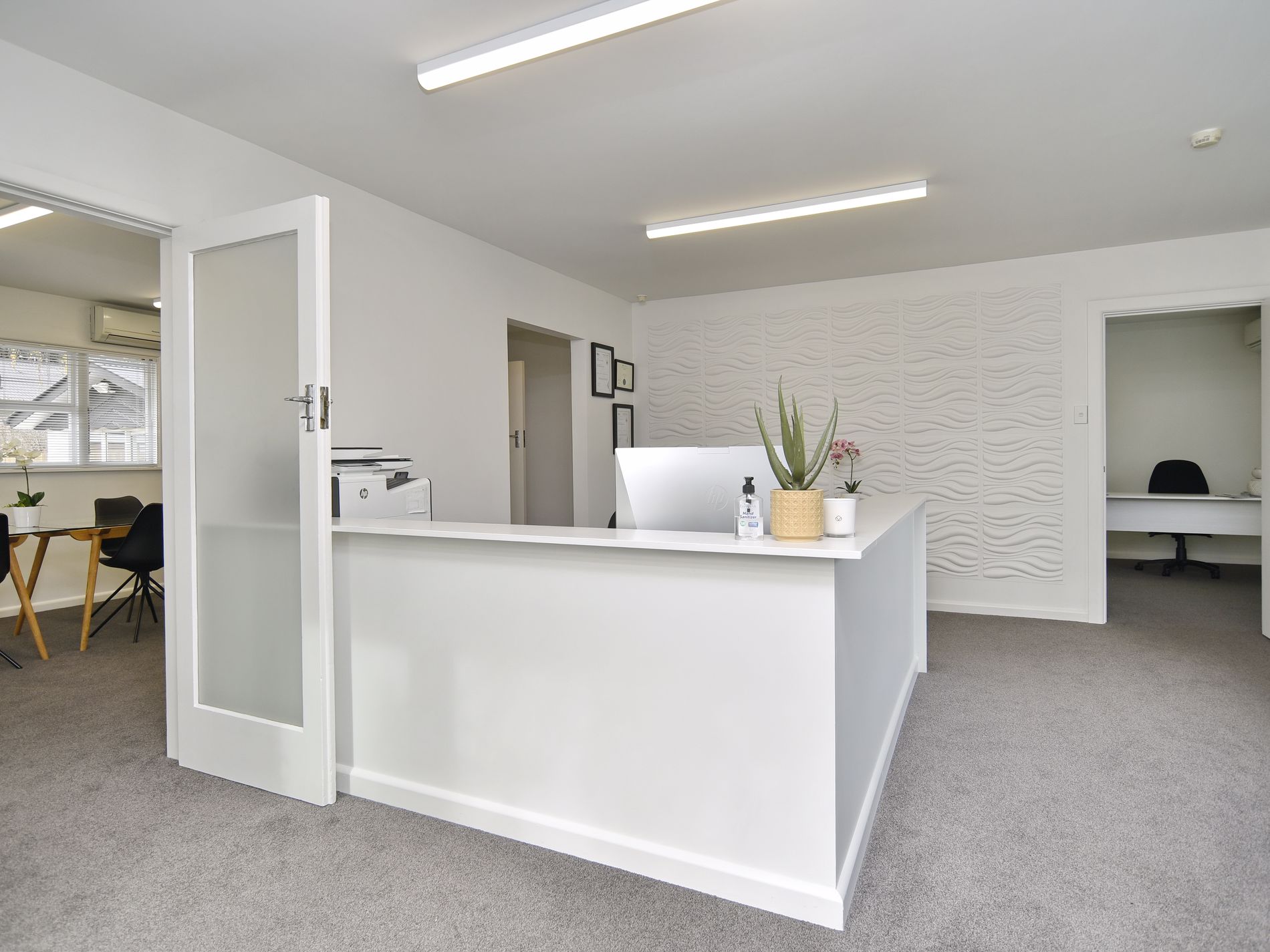 The quant building offers a reception area, a boardroom, two office rooms, kitchenette, services.