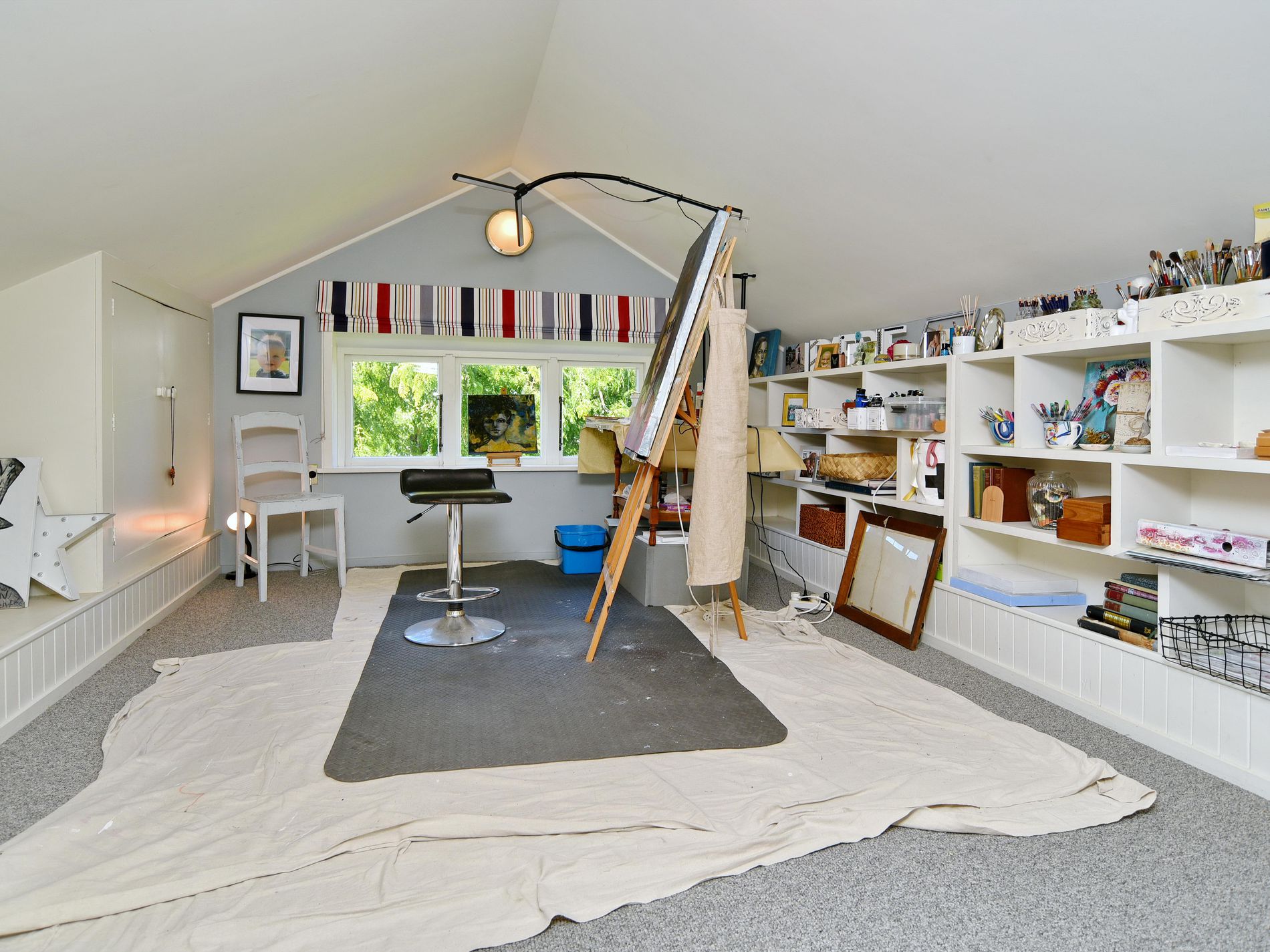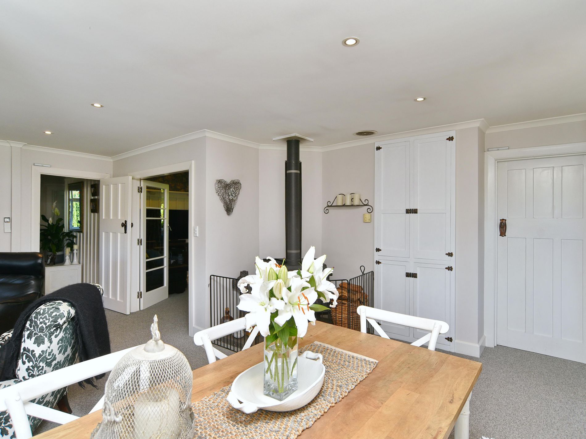 A cosy log burner with wetback forms the heart of the home, enhanced by three heat pumps for modern comfort. Storage is abundant, and practical features such as gas and electric hot water, a double garage plus workshop, and extensive off-street parking ensure everyday ease.
