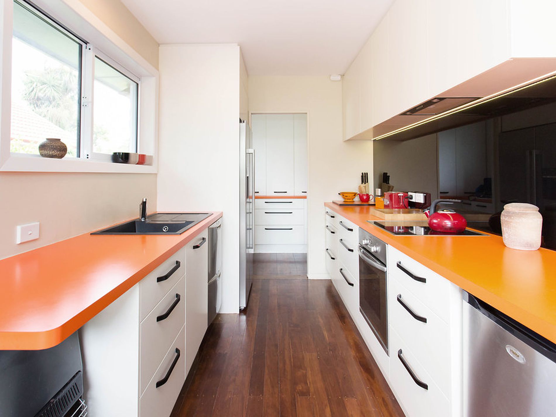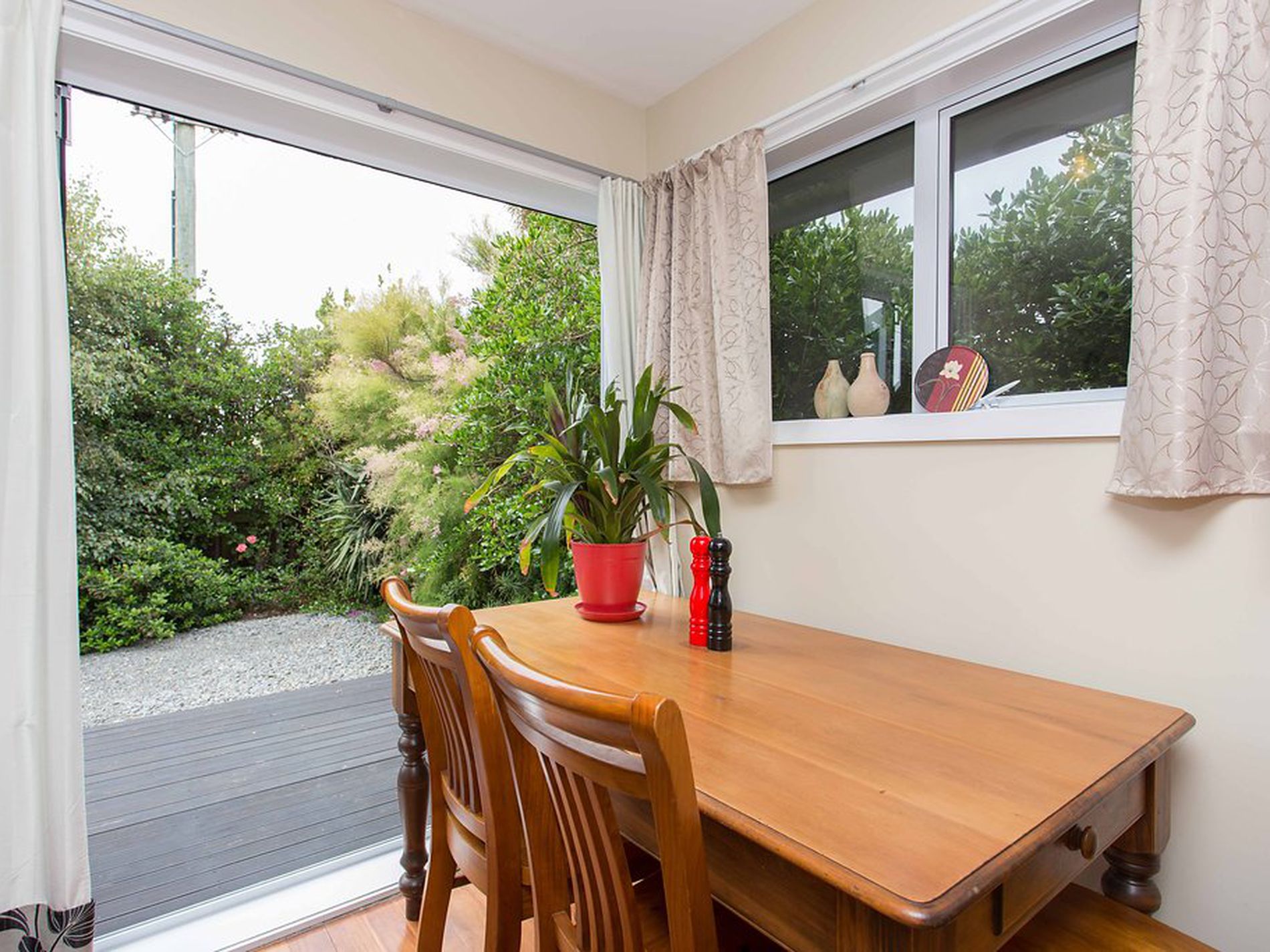 The spacious living area complete with polished wood floors, moves effortlessly through to the open plan dining including bi fold doors that open out to the private deck area, offering excellent indoor/outdoor flow. The modern kitchen is functional with the added bonus of a scullery, giving plenty of storage space. Other Features include:
