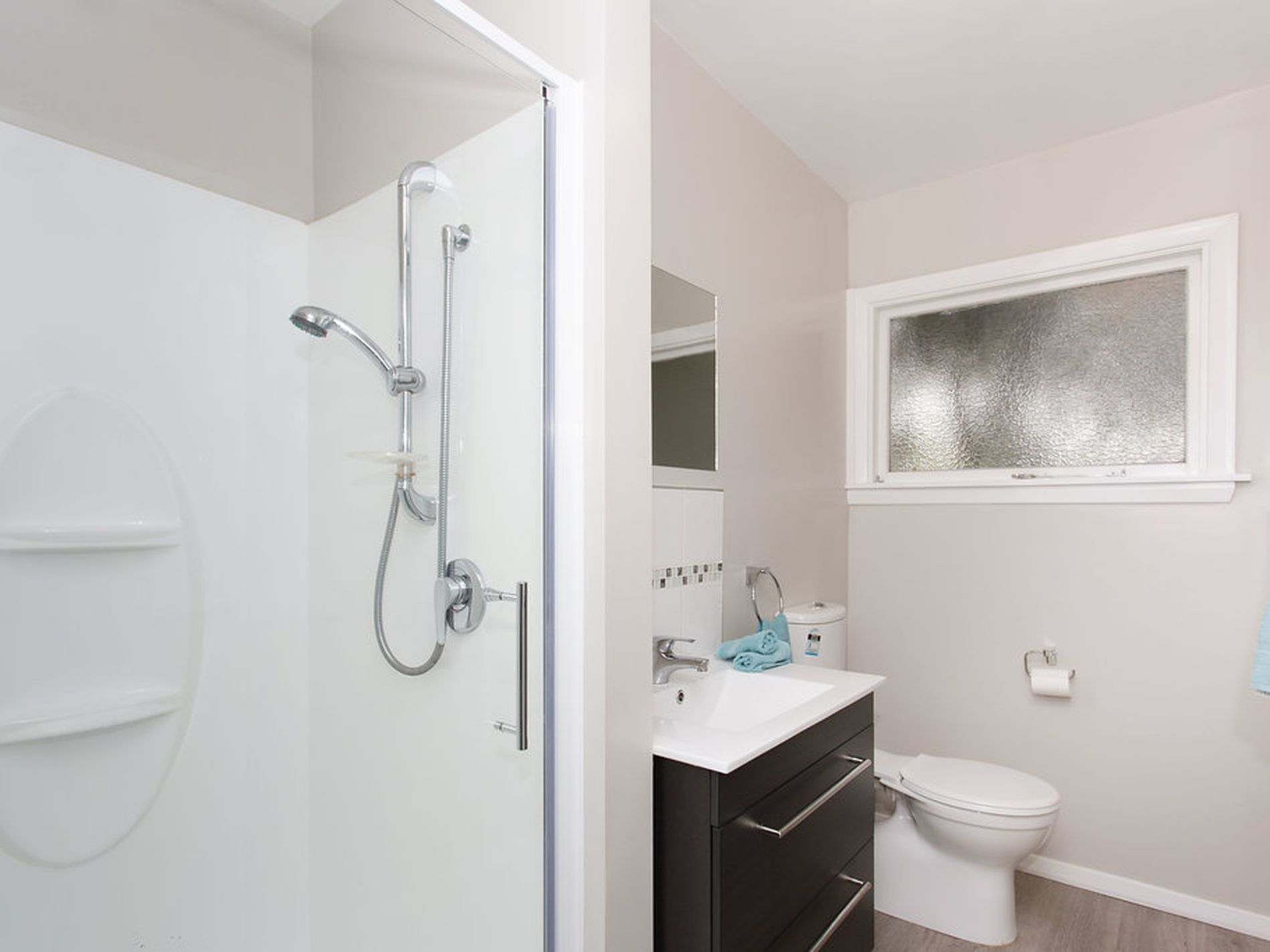 * Interconnected contemporary living spaces that open to a sheltered private raised deck and courtyard.
