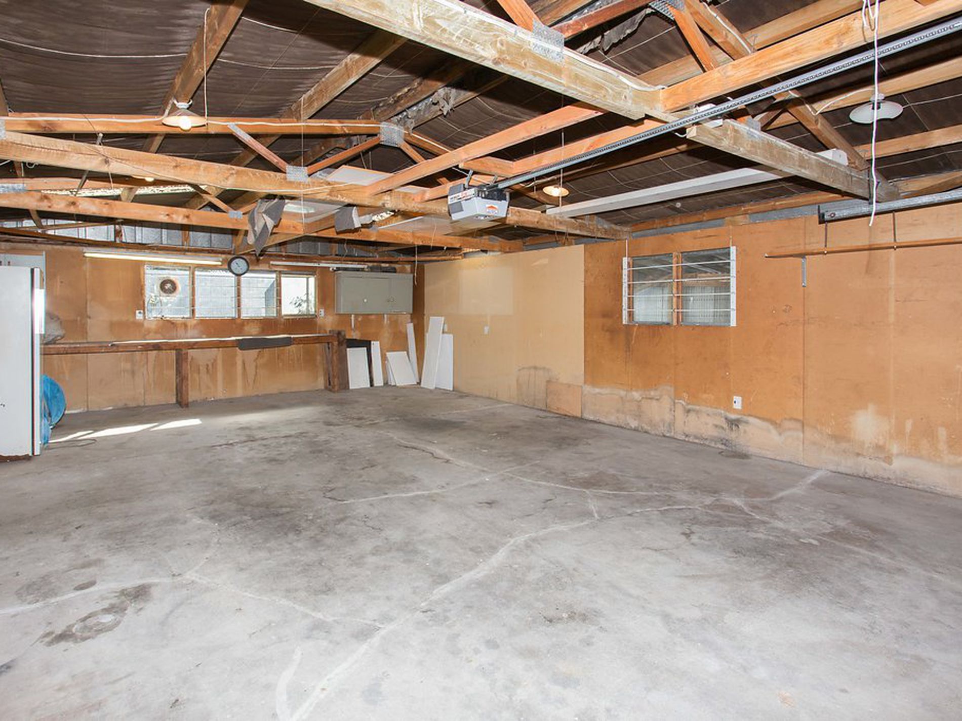 Oversized double, lined standalone garage/workshop forms an outer boundary accessed by auto garage door opener.