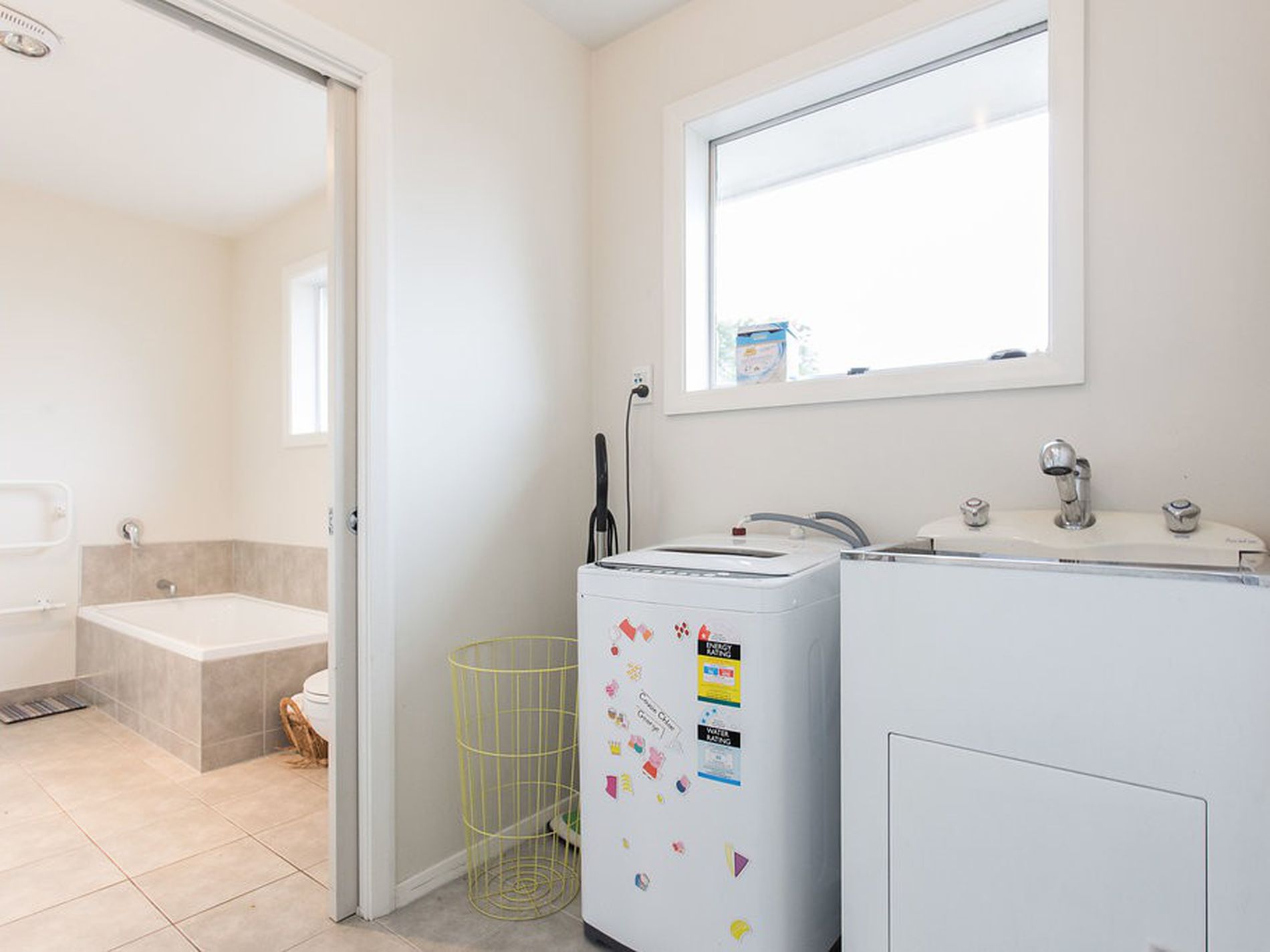 Kitchen, living, dining area are all interconnected in an open layout. The particularly spacious main living area is large enough to include a dining table. With the heat pump in living area you'll be well prepared for the colder months of the year. The functional, modernised, tiled kitchen provides plenty of extra storage space and added convenience to a busy daily life, with an adjoining large, separate laundry.
