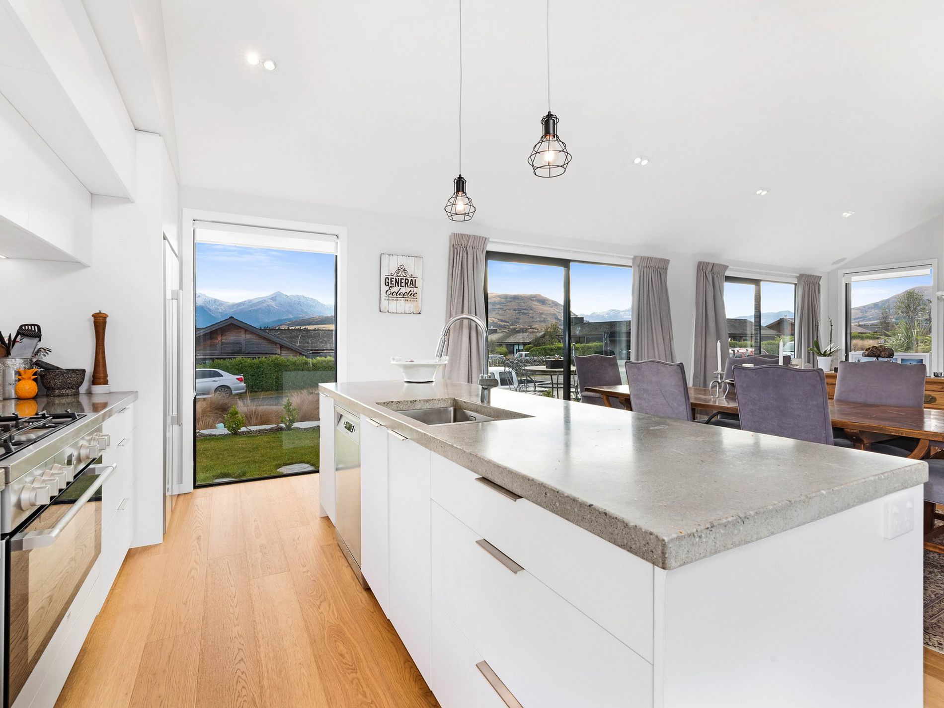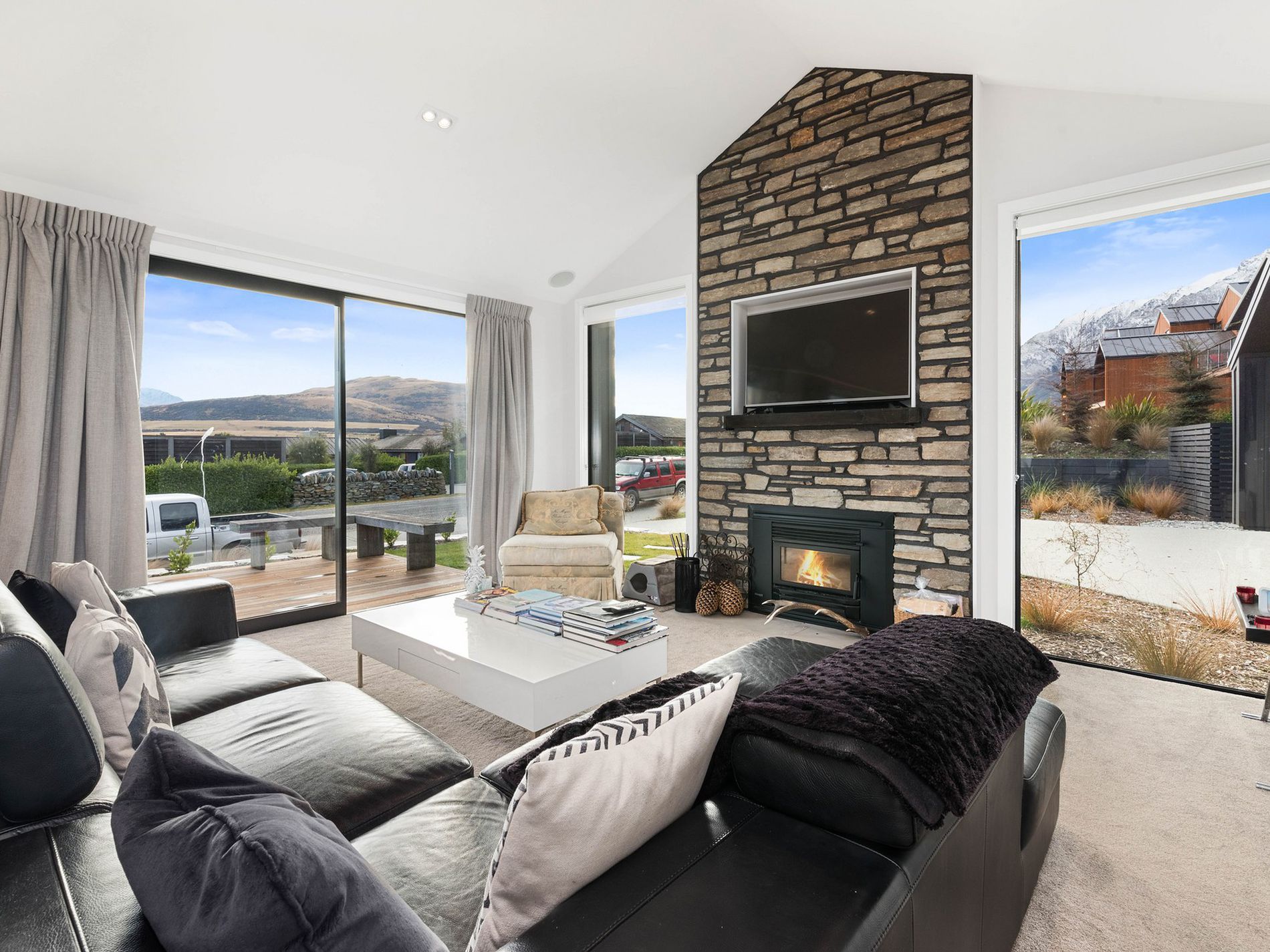North facing to capture the sun all year round, this cosy home has views to Coronet Peak and is an entertainers dream, with a wood burner to warm the spacious open plan living, kitchen, plus four spacious bedrooms coupled with lovely outdoor entertainment areas with low maintenance gardens.
