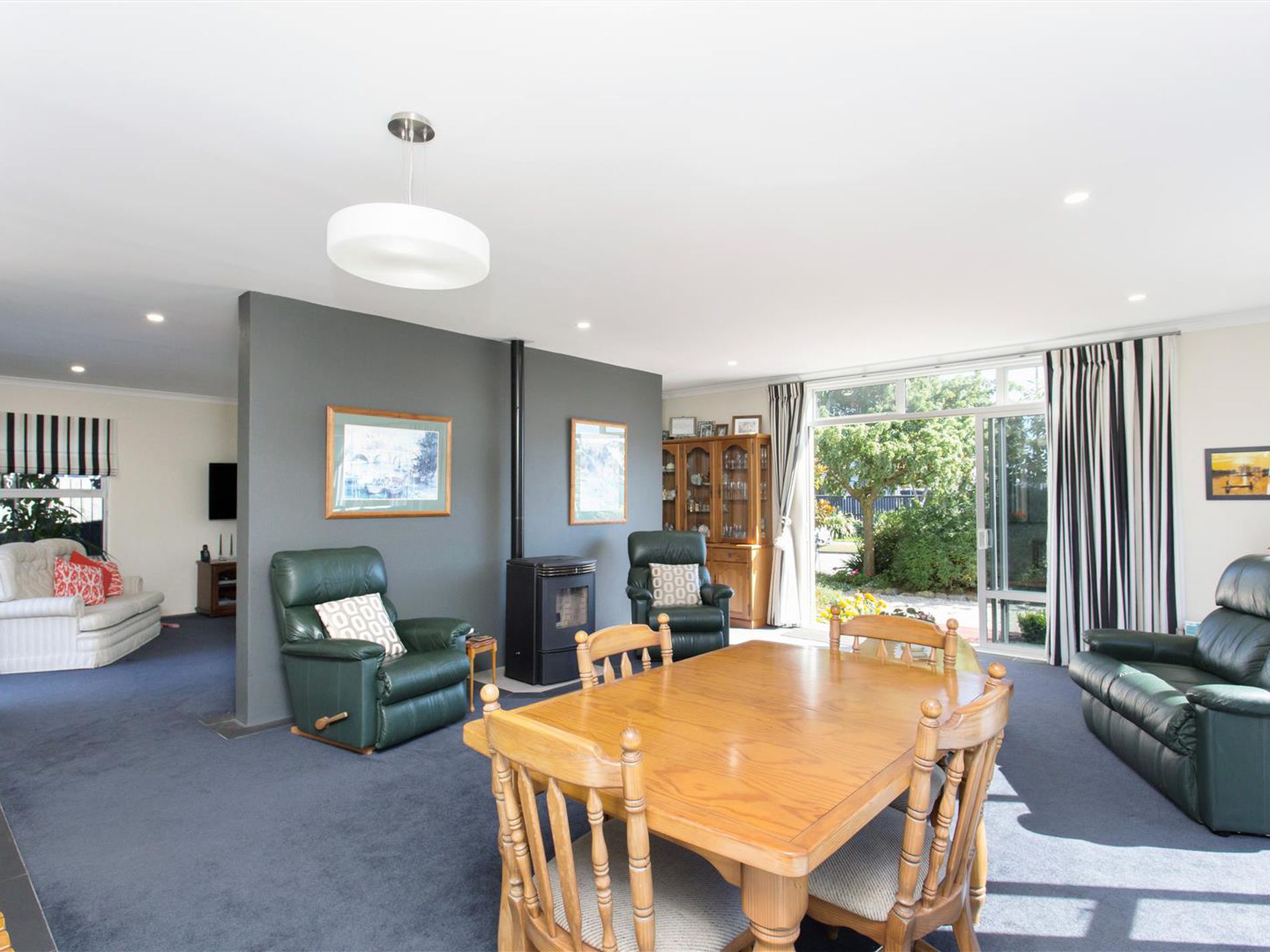 The main living is distinct from the sleeping quarters & incorporates 2-separated open-plan living spaces that wrap around the separating feature wall behind the pellet fire.