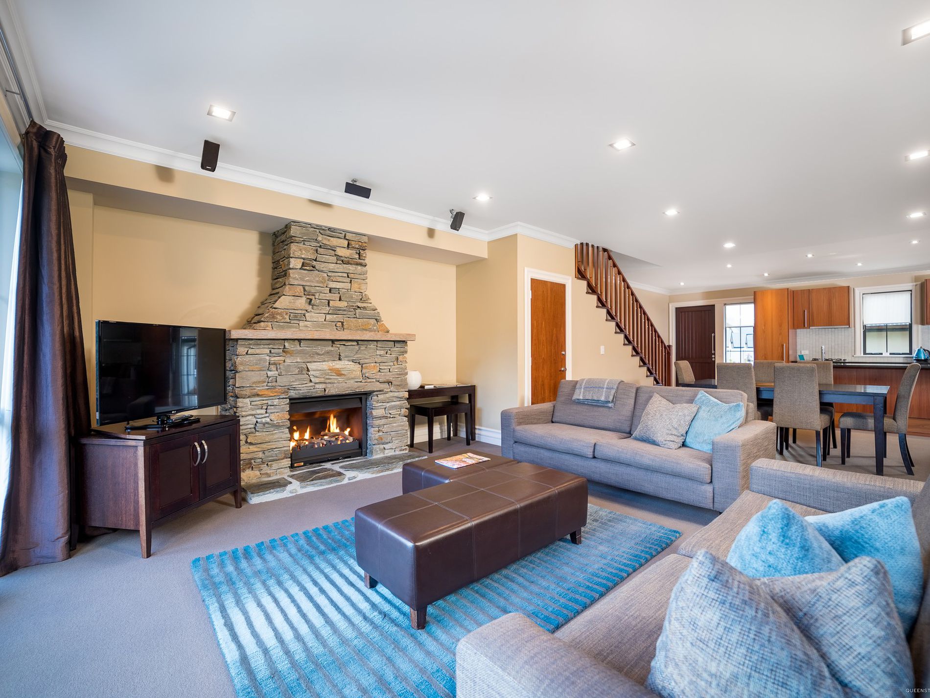 Fully furnished this 137m2 two storey villa instantly welcomes you with a large open plan living area. The full designer kitchen perfect for the chef of the family flows wonderfully to the dining and cosy lounge area with a new open gas fire which will warm the cockles of your heart. Open the biofolds and capture the morning sunshine on your patio. The peaceful quiet surroundings blend perfectly with the views of Lake Wakatipu and The Magical Remarkable Mountains.
