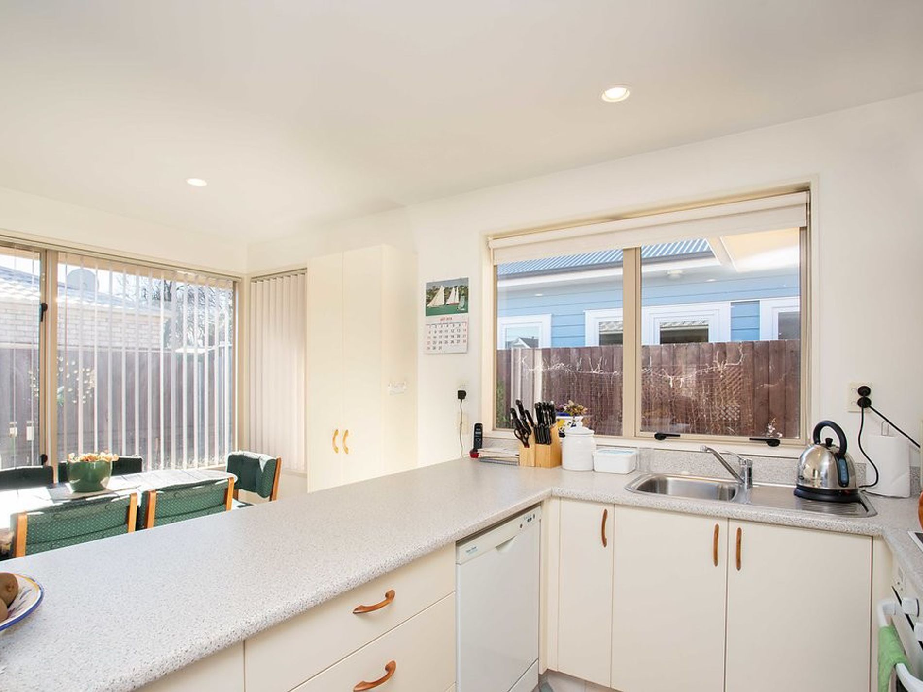 The open planned kitchen dining living area is positioned to the rear of the section offering privacy. Sliding doors lead to the outside deck and courtyard a great space to relax in while enjoying an easy care section.