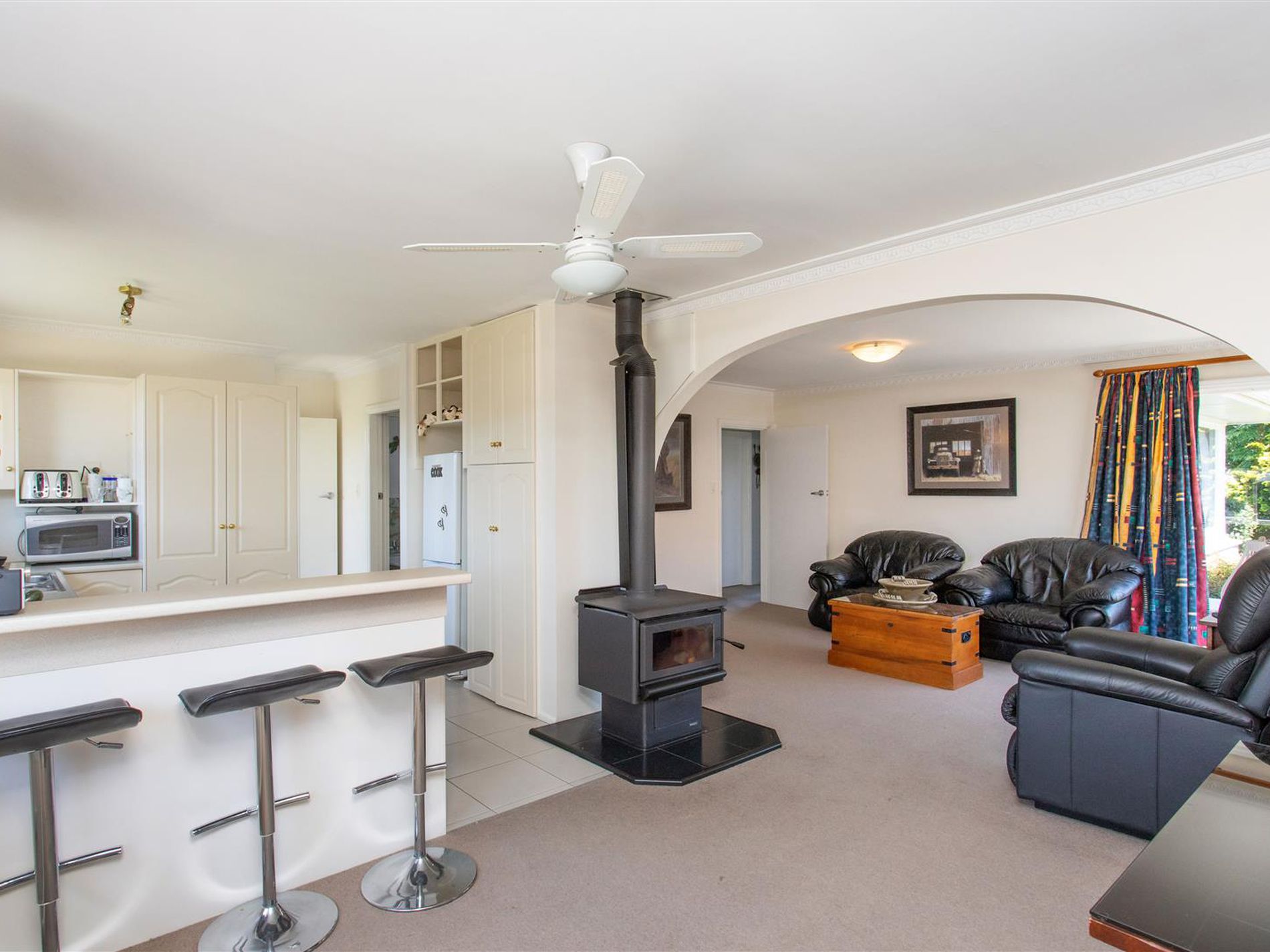 This 1960s solid 3 bedroom home has been lovingly maintained. Spacious open plan modern kitchen, dining and lounge with the bonus of a heat-pump and log-burner. Ideal for keeping cool in Summer and warm in winter.