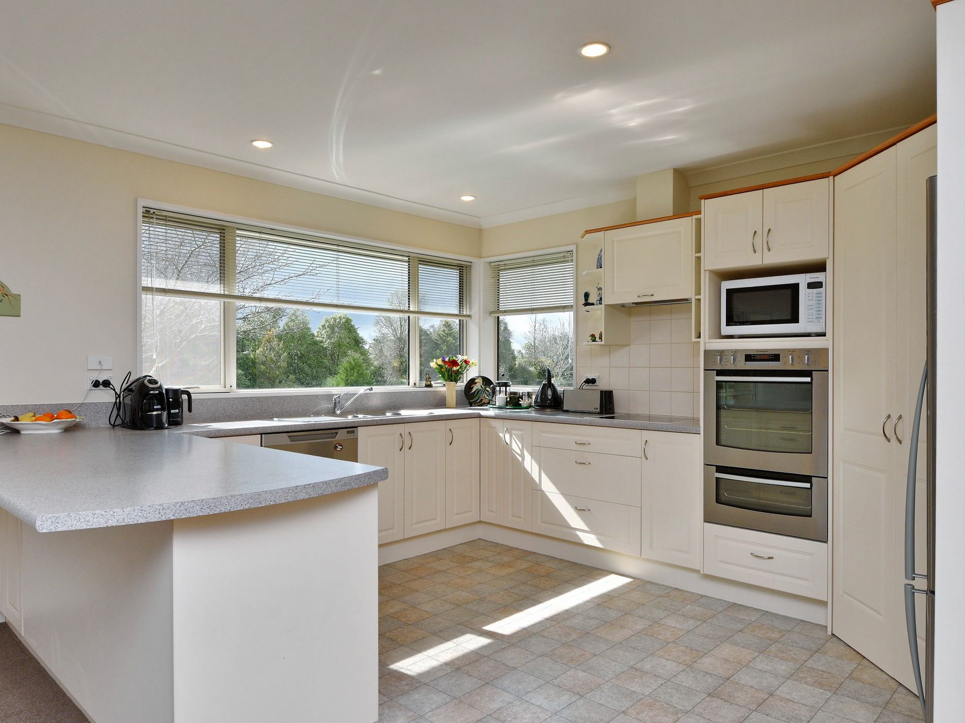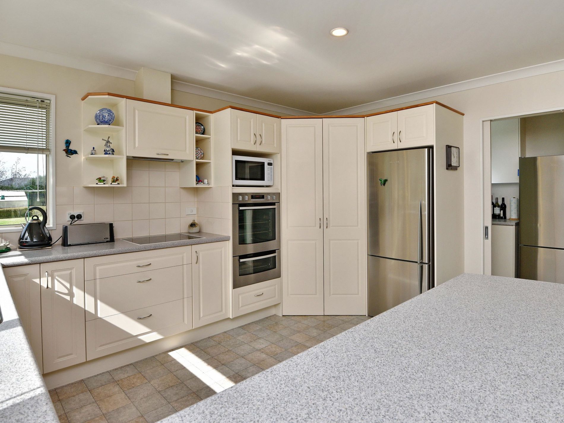 The anticipation of what lies within is enhanced by the tiled entryway directly accessed from the triple garaging & has a guest powder room. The main living areas are visible from the entry & heated by a super-efficient Yunca wood/coal burner. The bright & airy kitchen is designed with sleek lines, has all the mod-cons & comes complete with a large walk in pantry + double oven to keep the cook of the house happy.